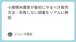 小規模米農家が最初にやるべき販売方法を、失敗しない順番で解説。知り合い販売→小さな直販→拡大の流れを具体的に紹介。初心者がやりがちな失敗例や、利益を伸ばすためのリアルな考え方もまとめています。