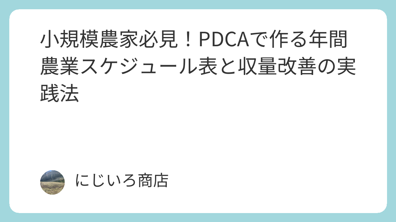 小規模農家でも PDCAサイクルを年間スケジュール表に落とし込む だけで、作業効率・収量・利益を大幅に改善できます。