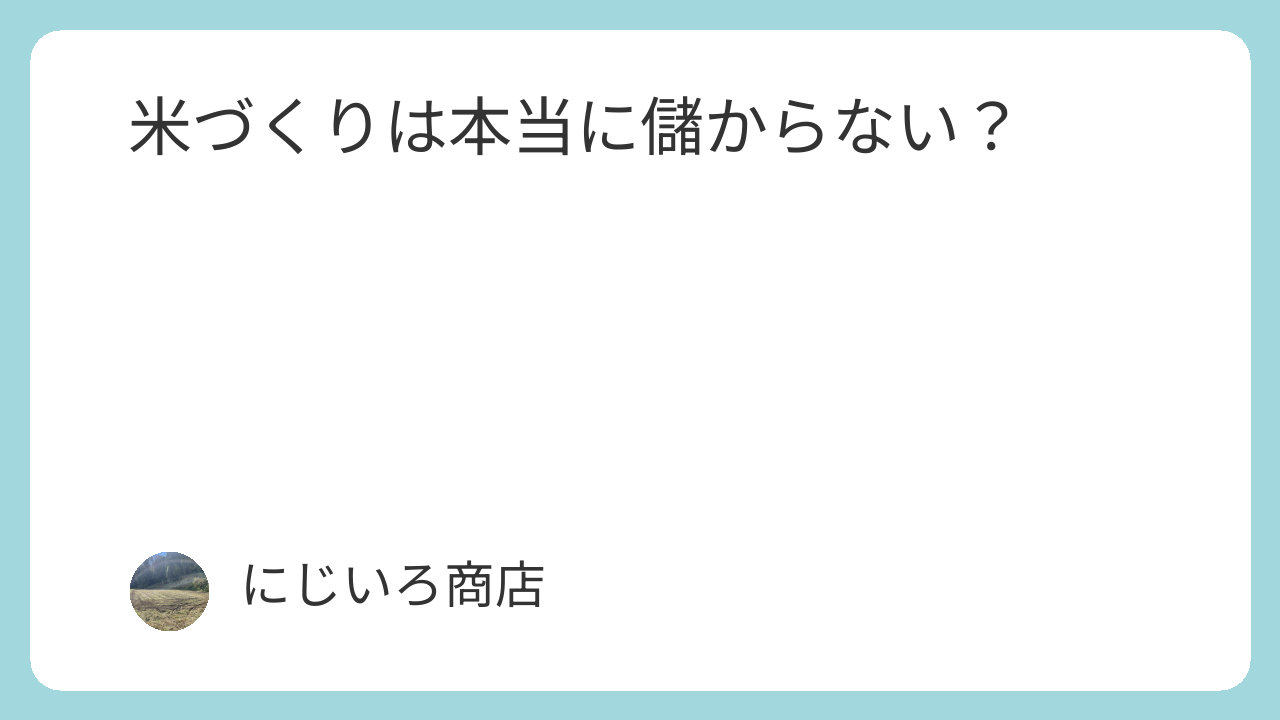 「米づくりは儲からない」と言われることは多いですが、数字を分解していくと、儲からない理由のほとんどは前提条件のズレです。