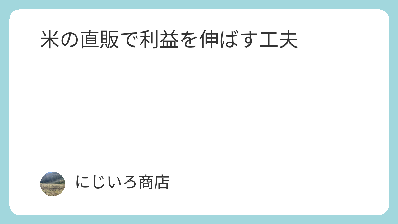 農業は「作る」だけでなく「売る」までが仕事。今回は、米の直販で利益を伸ばすための工夫について、地域の農家さんの話や、自分の今後の計画を交えながら考えてみたいと思います。