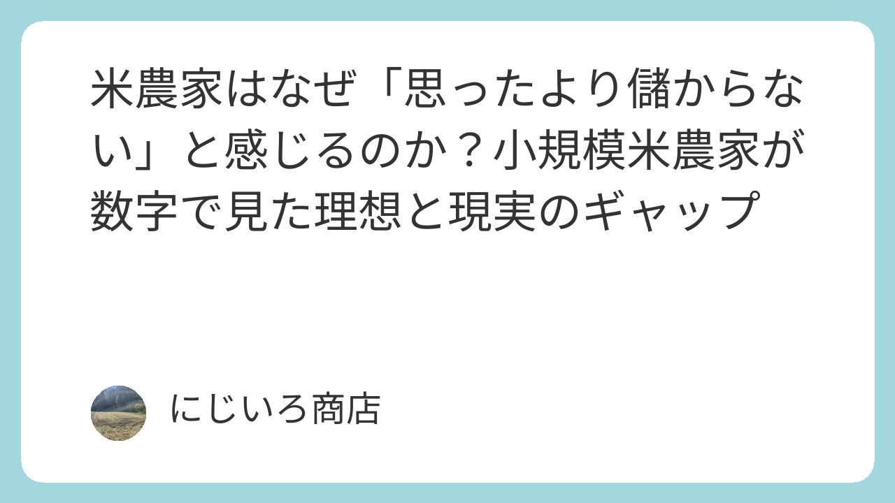 米農家はなぜ「思ったより儲からない」と感じるのか?小規模米農家が数字で見た理想と現実のギャップ