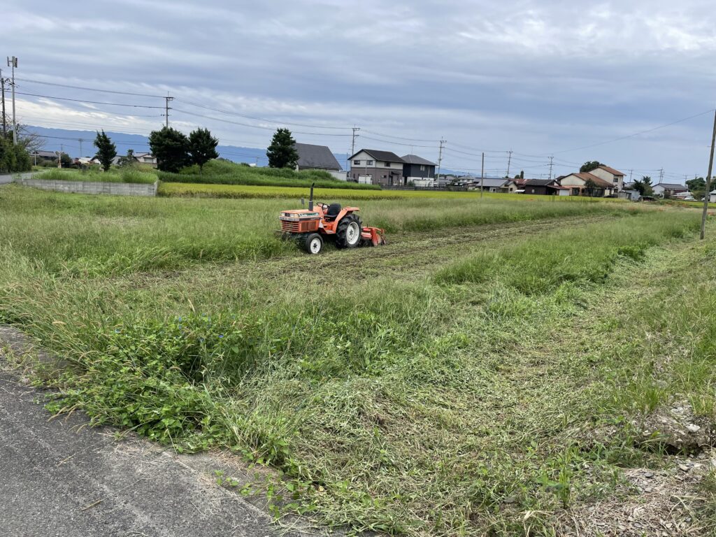 田んぼを整備し、草を刈り、機械を動かす練習をしているだけ。