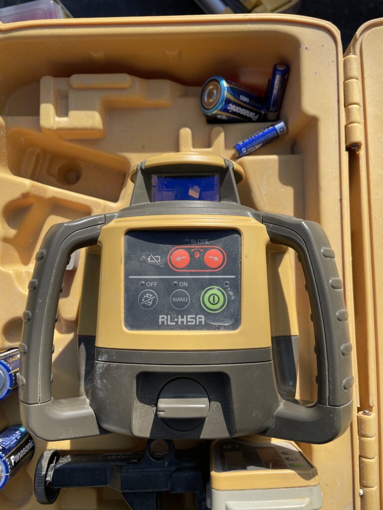 オートレベル(自動レベル測量器)で田んぼの高さを測り、平均値を出したこと。