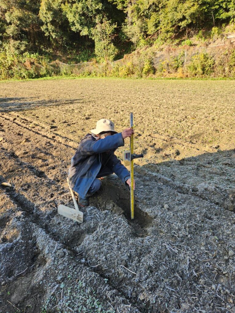 ② 表土の高さをオートレベルで測り、“正しい整地”をする