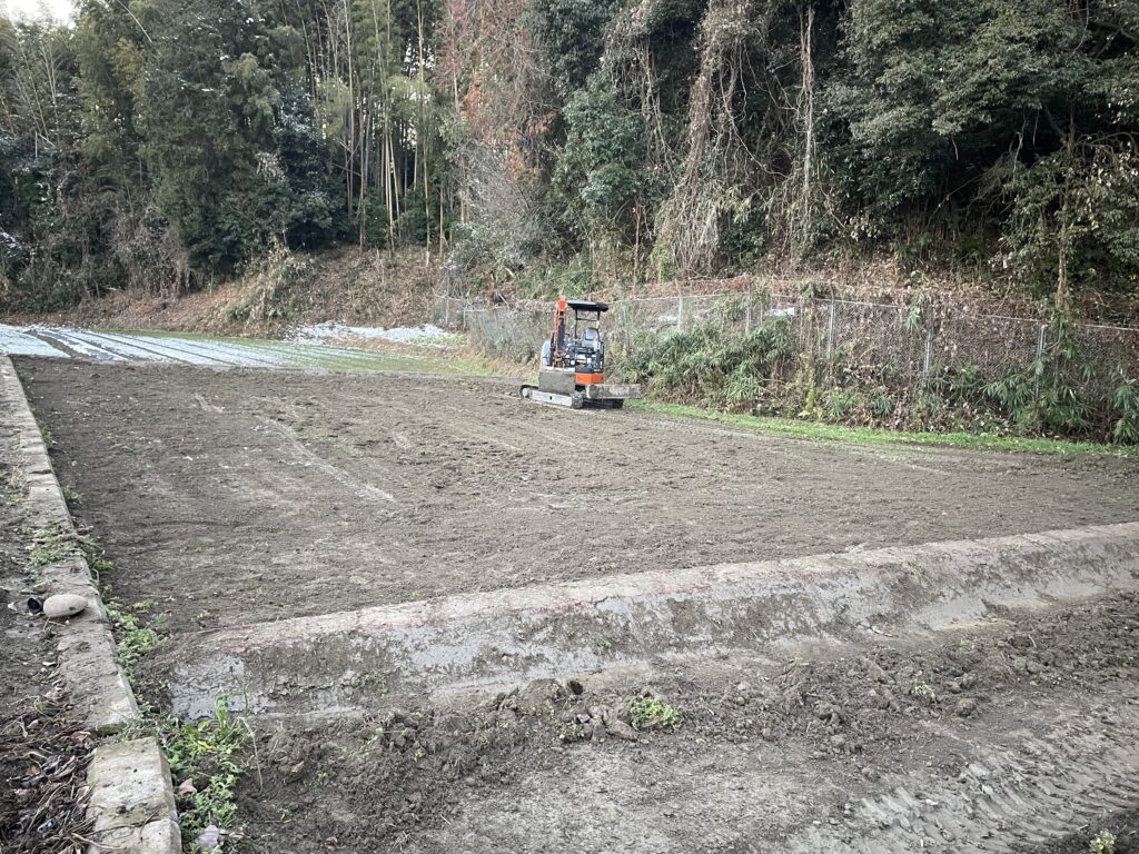 ③ ユンボで高低差をならし、田んぼの形を取り戻す